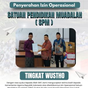 Jakarta — Kementerian Agama Republik Indonesia melalui Subdirektorat Satuan Pendidikan Muadalah (Subdit SPM) dan Pendidikan Diniyah Formal (PDF) secara resmi menyerahkan Izin Operasional Satuan Pendidikan Muadalah (SPM) Wustha kepada Pondok Pesantren Darul Ishlah….